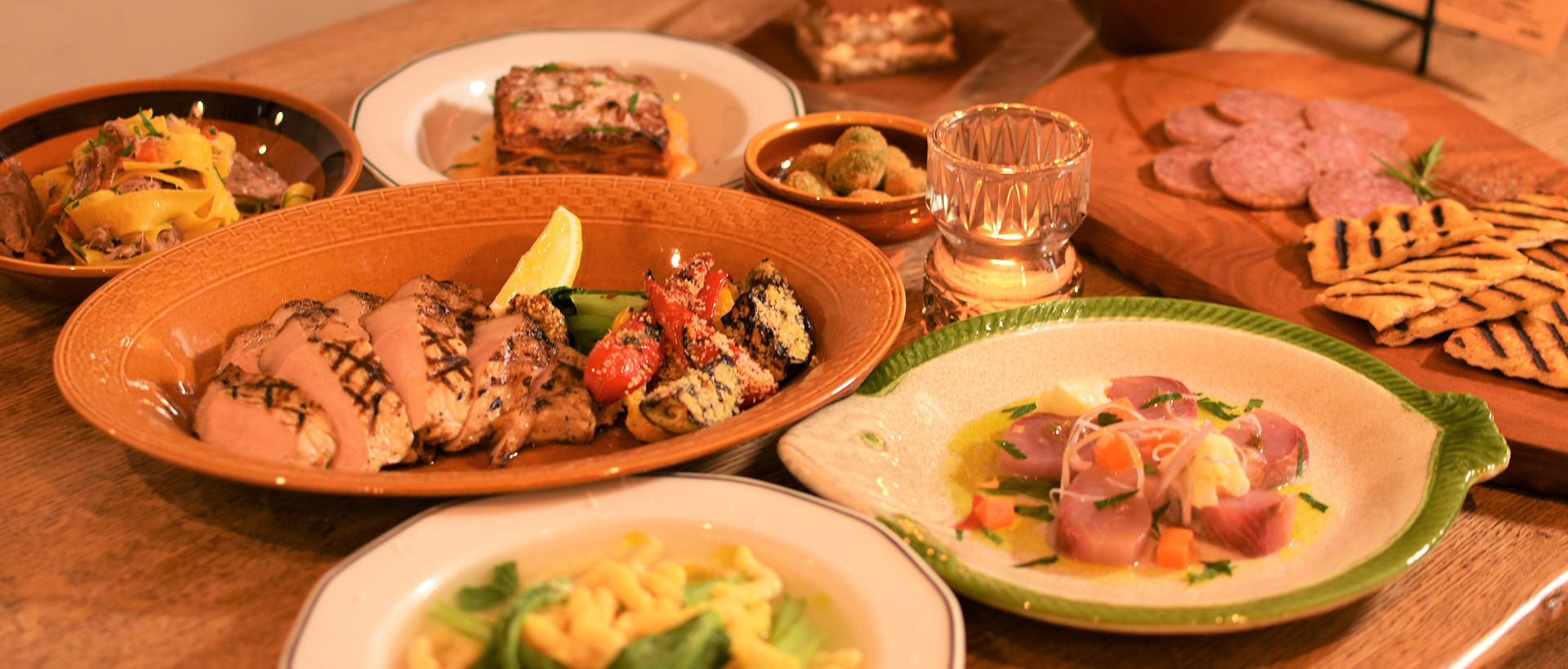 イタリア「マルケ州」随一のミシュラン二つ星店でメインシェフを務めたオーナーシェフによる、炭火窯を使ったマルケの郷土料理をカジュアルにお愉しみいただけます。